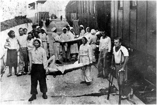 Женщины-активистоки, которые брали на себя заботу о транспортировке раненых, оказывали помощь медицинскому персоналу по уходу за ними. Тысячи школьников собирали лекарственные травы, зелень, идущую в пищу. Коллективы предприятий создавали при госпиталях подсобные хозяйства.